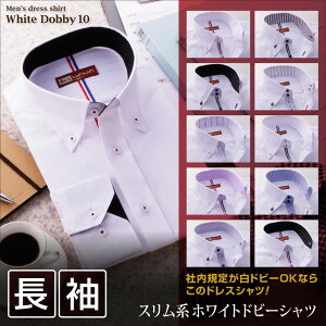 ワイシャツ 長袖 メンズ クールビズ カッターシャツ ホワイトドビー10種類2タイプから選べる ビジネス カジュアル