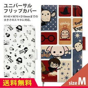 送料無料 ハリーポッター スマホカバー 手帳型 多機種に対応 Mサイズ マルチタイプ スマホケース ジャケット 全機種対応 iPhone Gakaxy AQUOS キャラクターグッズ Harry Potter ハリポタ グリフィンドール ロン ハーマイオニー ヘドウィグ ドビー